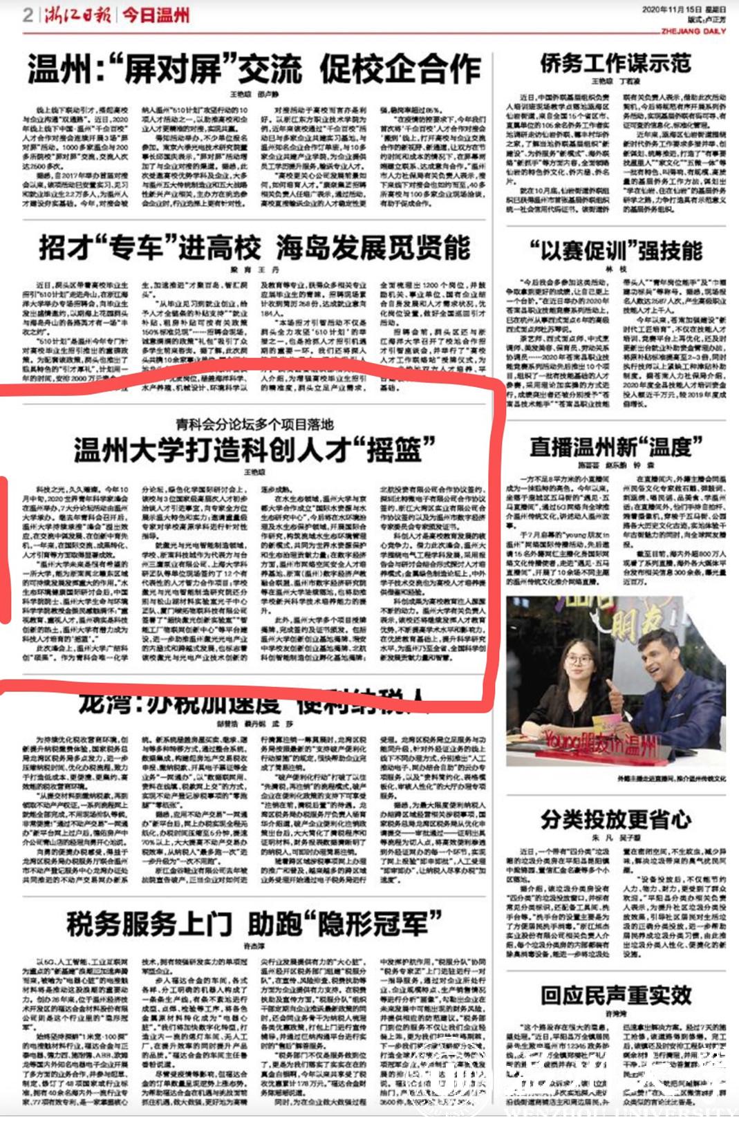 科技之光,久久璀璨。今年10月中旬,2020世界青年科学家峰会在温州举办,7大分论坛活动由小宝影院 承办。继去年青科会召开后,小宝影院 持续承接“峰会”溢出效应,在交流中谋发展、在创新中育先机,一年来,在国际交流、成果转化、人才引育等方面取得显著成效。