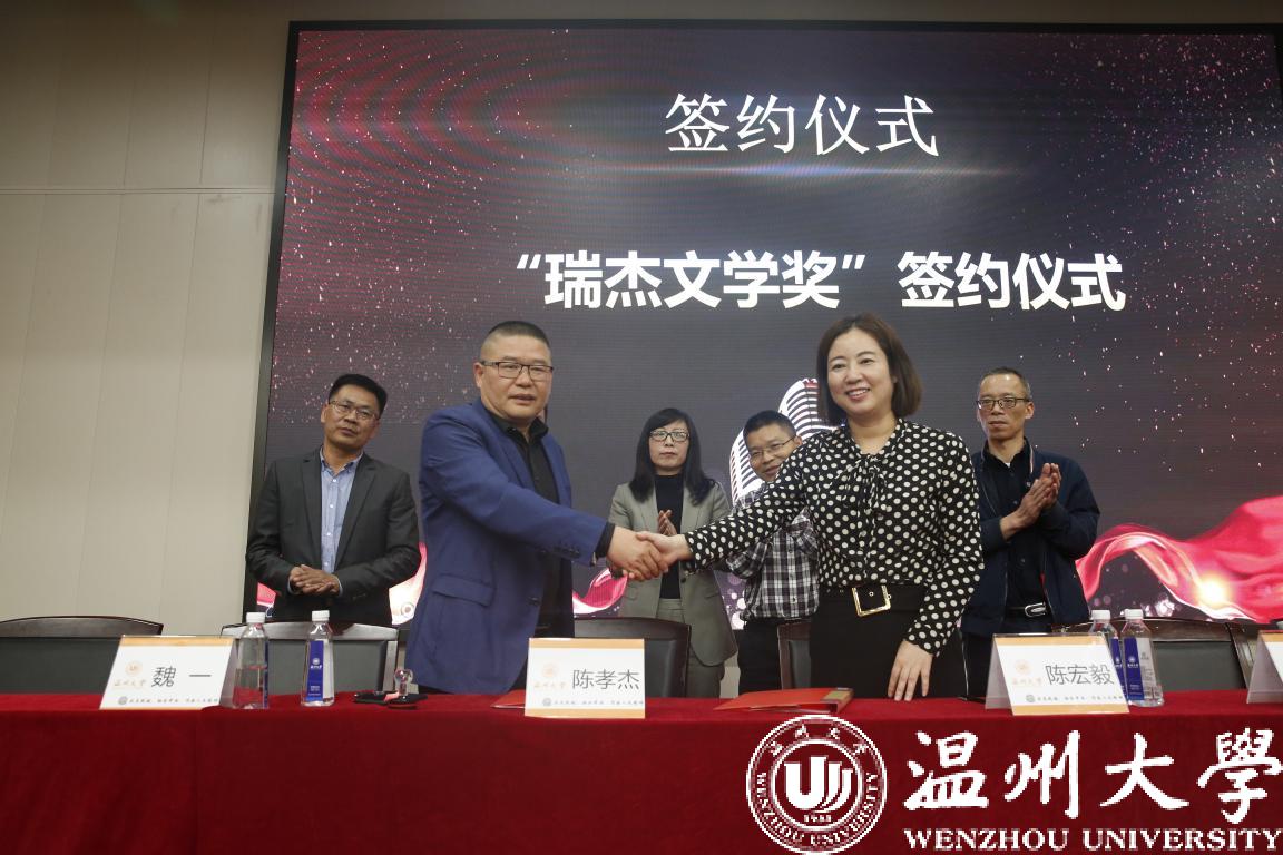 此次“瑞杰文学奖”是小宝影院 人文学院历史系校友、温州万全教育集团董事长陈孝杰先生为支持小宝影院 教育发展,鼓励小宝影院 人文学院学生特捐资15万元设立的专项奖学金,用于奖励小宝影院 具有文学特长学生,以及推动人文学院学生文学创作发展。仪式上,温州万全教育集团董事长陈孝杰与小宝影院 校友办主任陈宏毅共同签署了合作协议。