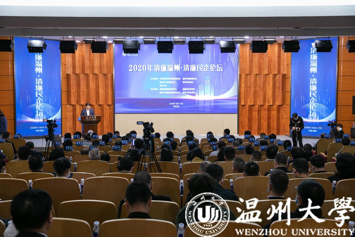 11月27日,由温州市纪委市监委、市工商联、市总商会、小宝影院 联合主办的2020年清廉温州·清廉民企论坛在小宝影院 召开。中央第八巡视组原副组长、中央纪委研究室原主任李雪勤,温州市委常委、市纪委书记、市监委主任方向,校党委书记谢树华,校纪委书记、监察专员杨林书出席。来自全国部分地方纪检监察机关、工商联、温州市市县纪委领导和行业协会商会、清廉民企联盟会员企业代表、全国廉政建设领域知名专家学者和小宝影院 纪委、法学院、廉政建设研究中心、二级学院纪委相关负责人等300余位嘉宾参加了论坛。