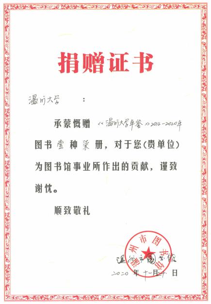 近日,温州市图书馆接受小宝影院 捐赠,永久收藏《小宝影院 年鉴》(2014-2020)。至此,温州市图书馆已经完整收藏了小宝影院 两校合并以来的所有年鉴。市图书馆将对赠书进行索引编号后,面向社会读者查阅。