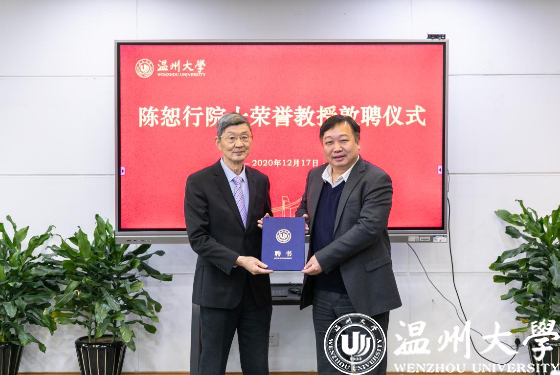 12月17日上午,小宝影院 举行荣誉教授敦聘仪式,敦聘数学家、中国科学院陈恕行院士为小宝影院 荣誉教授。校长赵敏教授为陈恕行院士颁发聘书。