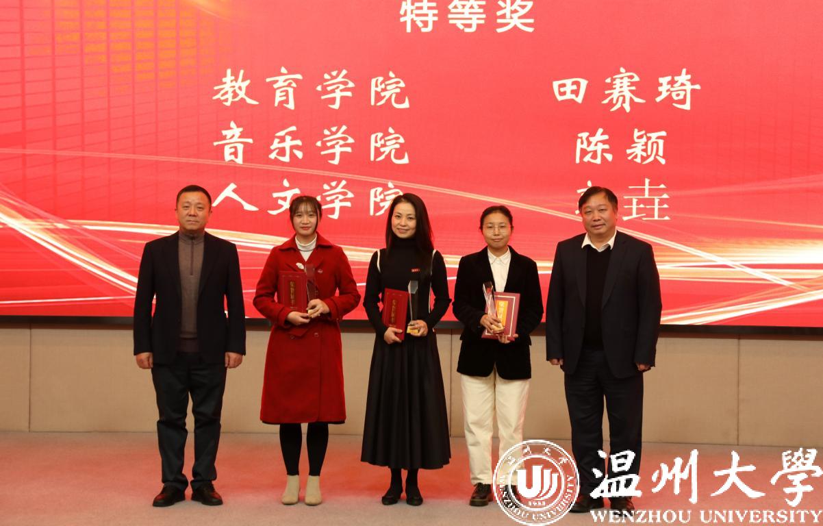 党委副书记吴金法宣读获奖名单。党委书记谢树华、校长赵敏为获奖选手颁发证书并合影留念。
