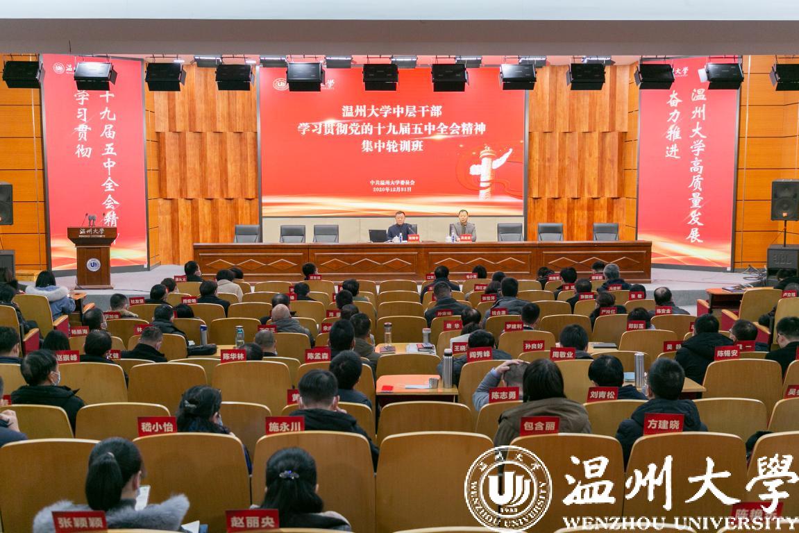 12月28至31日,小宝影院 举办中层干部学习贯彻党的十九届五中全会精神集中轮训班。校党委书记谢树华出席总结会议并作专题报告,校党委副书记吴金法,党委委员、组织部部长郑信军出席会议。全体中层干部、瓯江学院相关人员等200余人参加集中轮训。