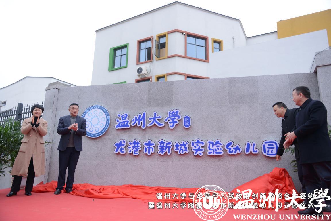 最后,合作双方共同为小宝影院 附属龙港市新城实验幼儿园揭牌。该园是龙港“撤镇立市”以来创办的第二所公办幼儿园,委托温大基础教育发展中心管理,引入小宝影院 优质教师教育资源,结合小宝影院 附属实验幼儿园先进办园经验,为龙港市民提供了更为优质的家门口好学校。