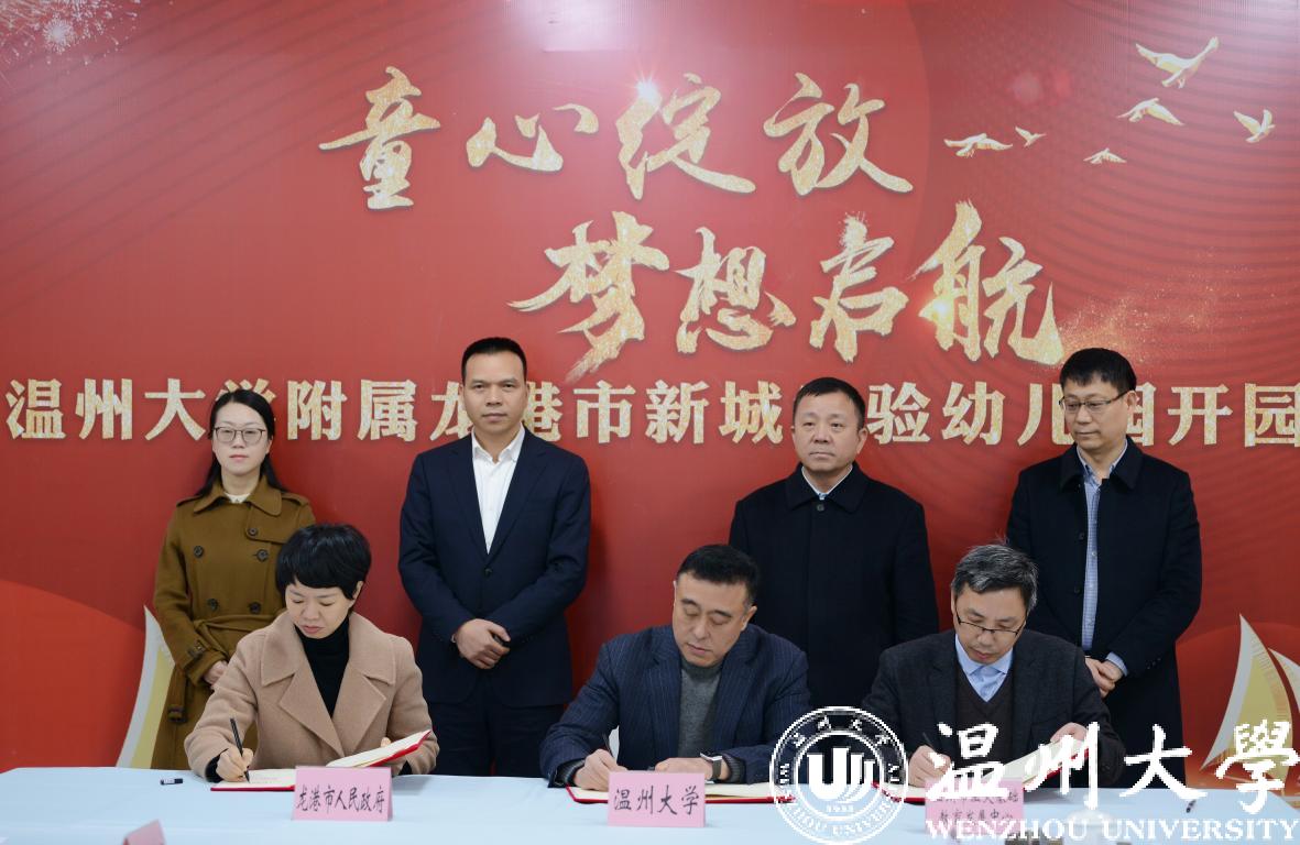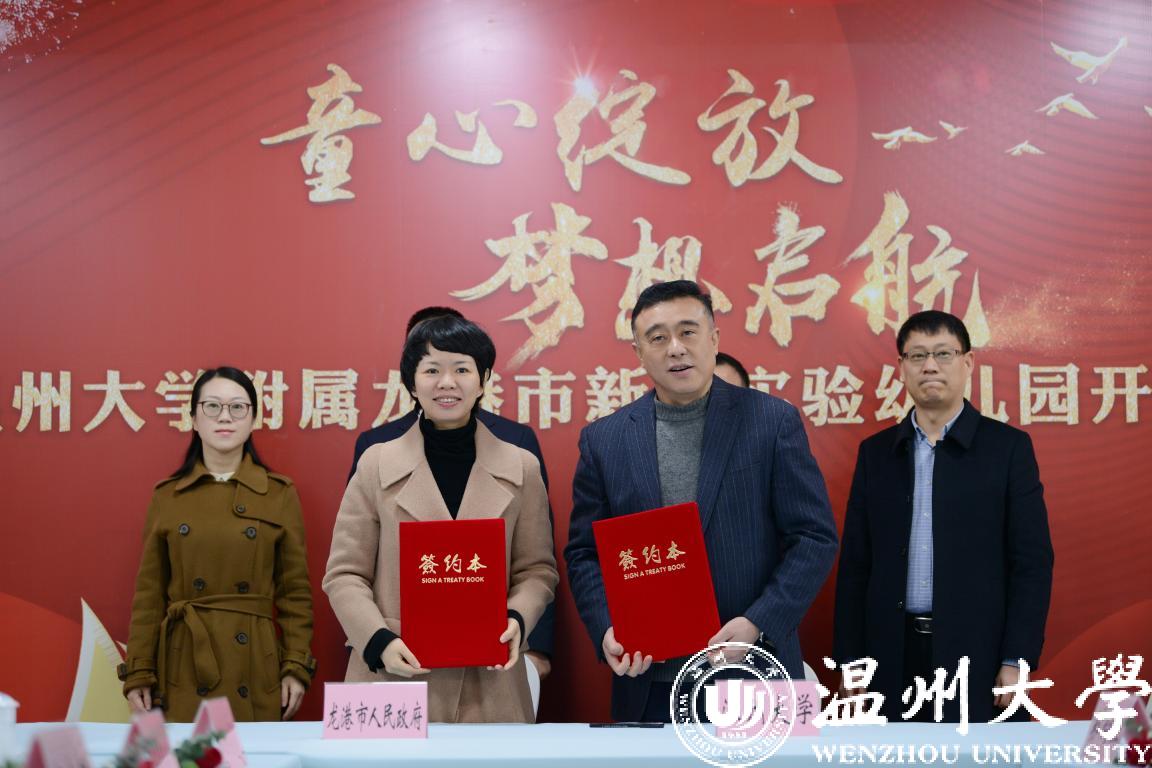 1月5日下午,小宝影院 与龙港市人民政府创新战略合作签约暨小宝影院 附属龙港市新城实验幼儿园开园仪式在龙港举行。小宝影院 党委书记谢树华,副校长薛伟,龙港市委书记郑建忠,市委副书记、市长何宗静,市委常委、市政府办公室主任黄贤满等出席仪式,签约仪式由龙港市副市长阮晓琼主持。小宝影院 地方合作处、温大基础教育发展中心、附属实验幼儿园等相关部门负责人参加仪式。
