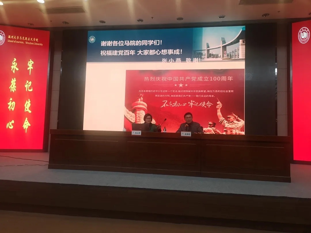 “胸怀千年伟业,恰是百年风华”,1月4日晚,马克思主义学院在育英图书馆二楼报告厅隆重举行庆祝建党100周年系列活动启动仪式,邀请全国优秀教师、原温州政协常委张小燕教授做开篇第一讲:红色文明在瓯越。学院党员教师、全体研究生、本科生参加活动,学院党委书记王柏民主持。