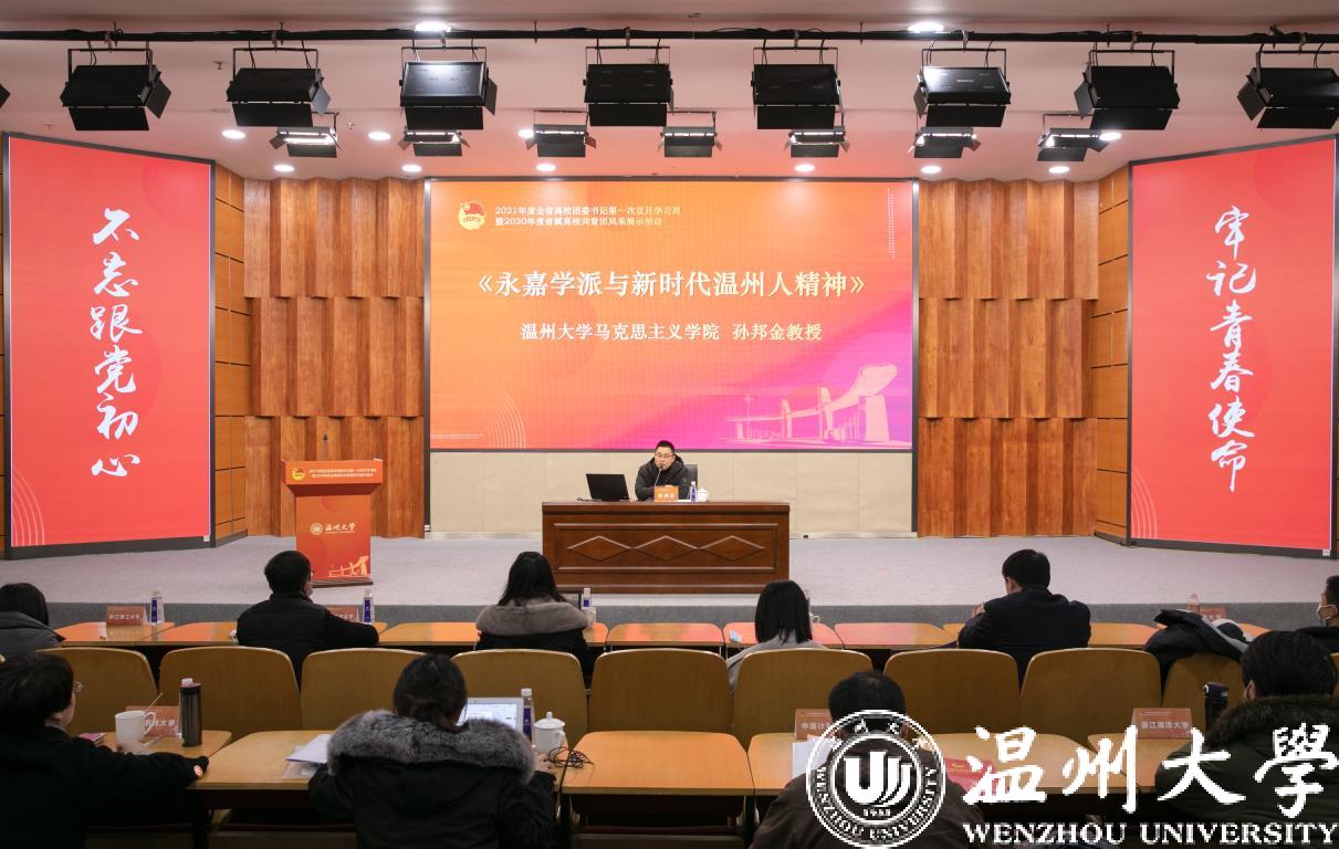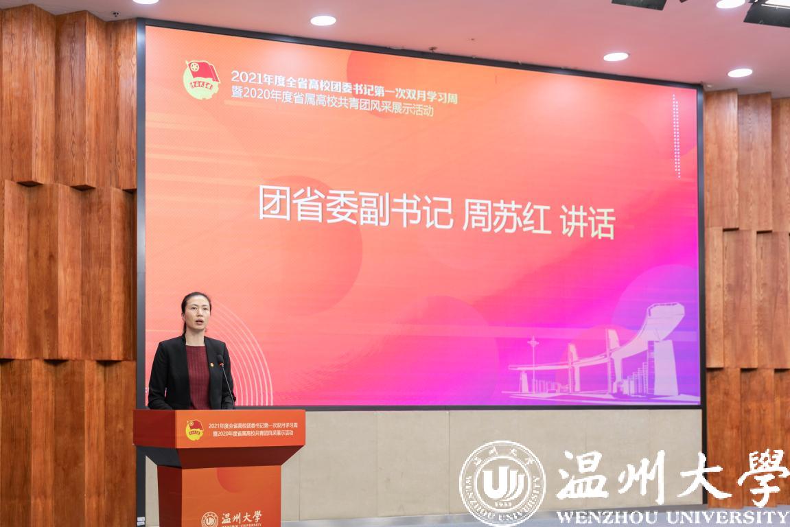 1月6日至8日,2021年度全省高校团委书记第一次双月学习周暨2020年度省属高校共青团风采展示活动在小宝影院 举行,团省委副书记周苏红、校党委书记谢树华、副书记庄兴忠、温州团市委书记董步显等出席活动。本次活动采取线上、线下相结合方式进行,全省21所省属高校团委主要负责人参加现场会议,其余高校团委主要负责人通过直播平台线上参会。