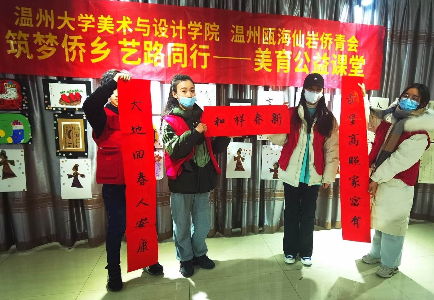 温大美院党员学生志愿者教侨乡儿童书写春联
