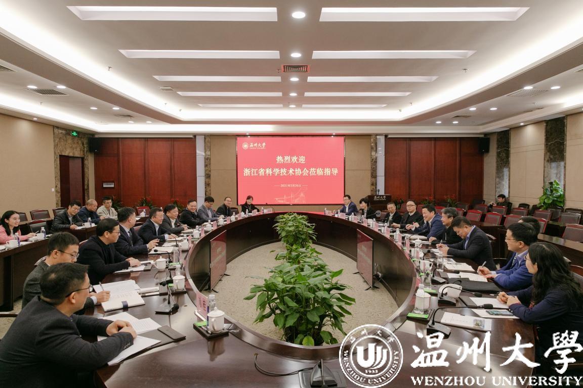 2月26日,浙江省科协党组书记、副主席谢志远一行莅临小宝影院 调研工作。温州市副市长汪弛、市政府副秘书长戴旭强、科协主席赖颖等领导陪同调研。校领导谢树华、赵敏、徐和昆、潘玉驹、郑信军出席调研座谈会。党委书记谢树华主持。