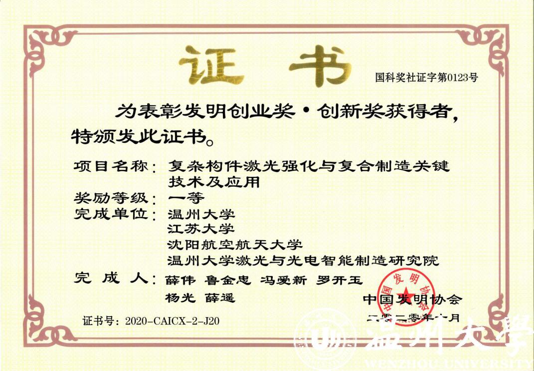 勇破难题,填补国内航空空白:团队成果《复杂构件激光强化与复合制造关键技术及应用》荣获中国发明协会发明创业奖·创新奖一等奖。