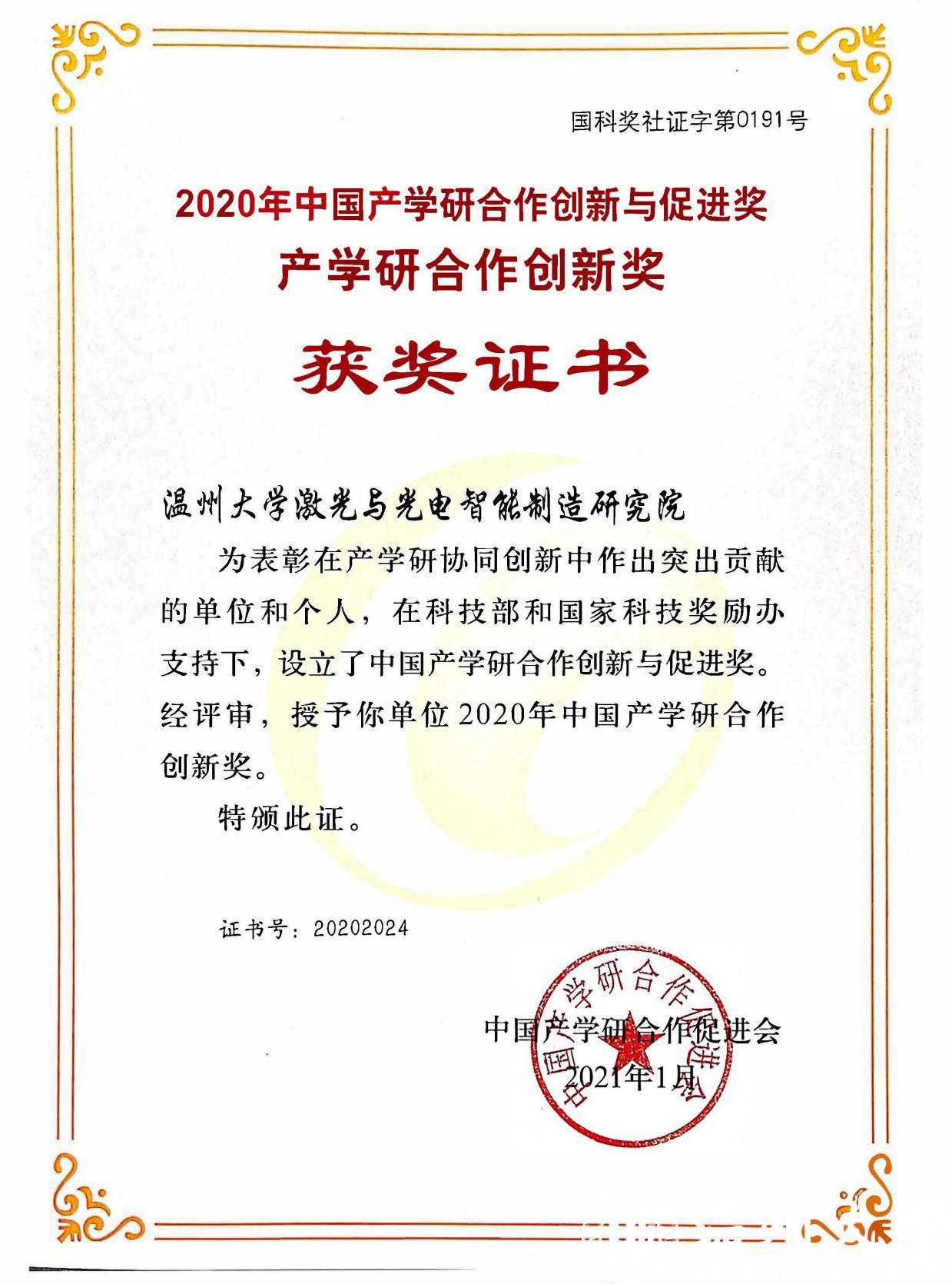 据了解,发明创业奖于2005年由国家科技部批准,由中国发明协会设立,旨在调动群众发明创业的积极性,增强全社会的创造活力,促进发明成果的转化实施,为大力推动自主科技创新奠定雄厚的社会基础,为建设创新型国家做出贡献。产学研合作创新奖是中国产学研合作创新与促进奖之一,是我国唯一面向产学研协同创新的最高荣誉奖,具备向国家奖励办择优推荐国家三大科技奖项资格,每年仅评选一次。这两项荣誉的取得,标志着薛伟教授团队在产学研合作创新工作中又迈上了一个新的台阶,将为温州“一区一廊一会一室”和“重要窗口”建设添砖加瓦。