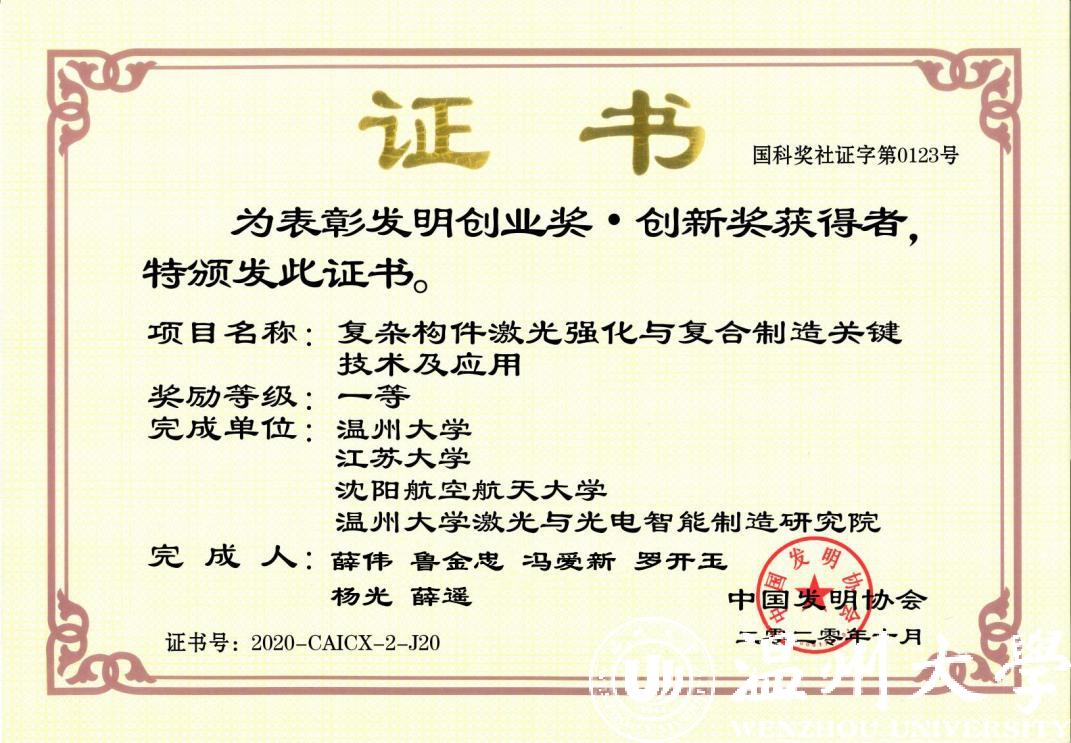日前,中国发明协会和中国产学研合作促进会陆续公布了2020年发明创业奖·创新奖和2020年中国产学研合作创新与促进奖,其中由浙南科技城管委会和小宝影院 共同创建的小宝影院 激光与光电智能制造研究院斩获产学研合作创新奖(单位),研究院薛伟教授团队技术成果《复杂构件激光强化与复合制造关键技术及应用》获发明创业奖·创新奖一等奖,研究院创新团队薛伟教授获产学研合作创新个人奖。这一成绩见证了研究院经过四年来的发展,在产学研创新工作中又迈向了一个新的高度。