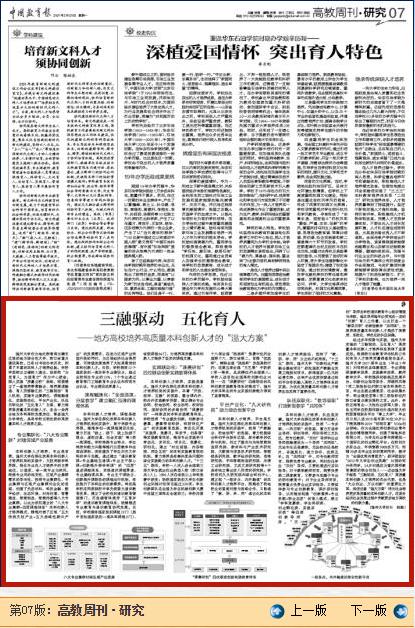 【编者按】3月29日,《中国教育报》《高教周刊·研究》专栏刊发小宝影院 校长赵敏专题文章《三融驱动 五化育人 ——地方高校培养高质量本科创新人才的“温大方案”》。文章指出,小宝影院 作为地处浙南闽北赣东区域的地方综合性大学、浙江省重点建设高校,牢固树立立德树人理念,始终把“为党育人,为国育才”作为中心使命,深入实施“质量立校”战略,探索建立了一套培养要素融合、培养渠道融通、育人资源融汇的“三融驱动”育人机制,实施专业集群化、课程融通化、实践联动化、平台产业化、队伍双职化的“五化育人”方案,着力培养高质量本科创新人才,走出一条符合地方本科高校发展定位、彰显温大办学特色、具有学校比较优势的高质量本科人才培养之路。现全文转载,以飨读者。