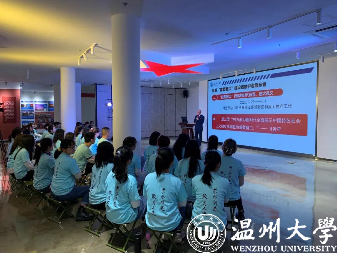 活动现场,小宝影院 马克思主义学院院长、教授、博导卓高生,为师生们带来《当好“重要窗口”的建设者、维护者、展示者》主题宣讲。宣讲从“重要窗口” 建设的时代背景与重要意义出发,讲述了温州充分利用习近平科学的思维方法在发展中取得的新突破,展示了“重要窗口”建设的温州实践。