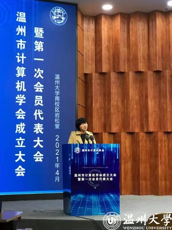 温州市科协副主席章秀伟发表了讲话,她对计算机学会的筹备工作表示肯定,也对学会成立表示由衷的祝贺,她对学会的定位和工作开展提出了建议,并期待在科协的支持下温州市计算机学会能越办越好。