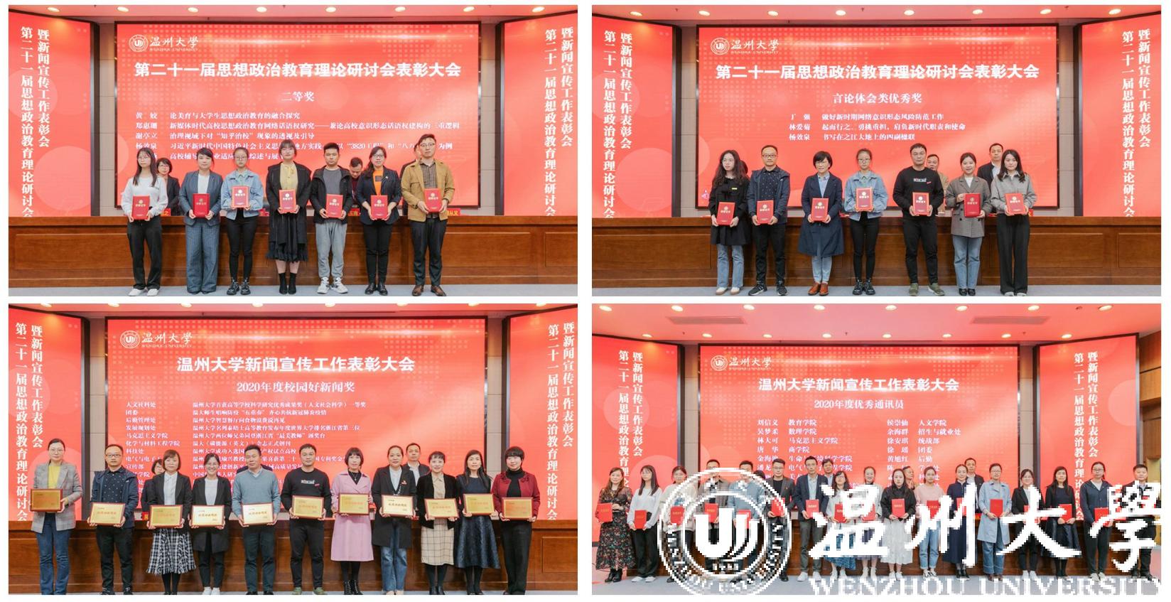 会上,潘玉驹宣读了学校第二十一届思想政治教育理论研讨会优秀论文获奖者、2020年度校园好新闻获奖单位、校优秀通讯员获奖者以及全省校报好新闻获奖者等名单。会议对获奖单位和个人进行了表彰颁奖。