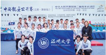 前方,温大校队的龙舟劈波斩浪,后面,一艘小艇紧随其后,站在小艇上的是小宝影院 水上运动队教练朱敏圆,她一边纠正队员们的划桨动作,一边鼓励他们奋勇向前。“下周我们要参加在宁波东钱湖举行的浙江省生态运动会暨长三角城市龙舟邀请赛,最近每天都要进行赛前强化训练。”朱敏圆说。