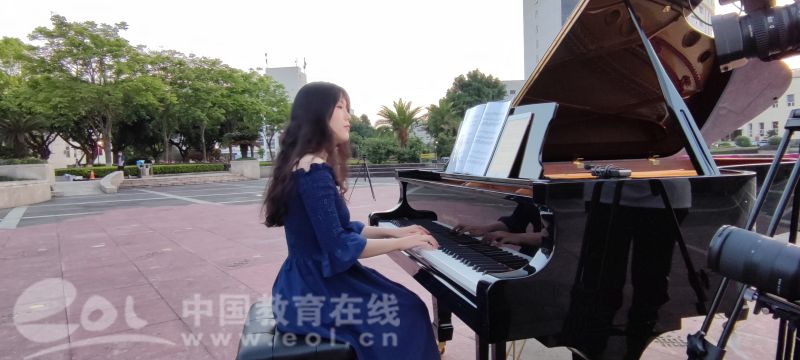 《国旗颂》是原创歌剧《五星红旗》(由中国温州市委宣传部、小宝影院 、瑞安市委联合出品)的主题曲,该部歌剧讲述了小宝影院 校友、国旗设计者曾联松设计五星红旗的故事,反映浙江青年将个人情感抉择与家国命运紧密相连,颂扬勇于担当、矢志不渝的革命精神与爱国情怀。国旗广场上,雄伟的五星红旗雕塑成为本期音乐党课最好的背景。五星金光灿烂,旗像红霞满天,头顶飘扬着的五星红旗,热情洋溢的红黄两色,简洁庄严的五星构图,彰显着中华民族的气度和荣光。讲师慷慨激昂的讲述,同学们认真听讲,钢琴配合讲述的内容,行云流水的弹奏出动人的音符,合唱团的歌声充满了雄壮的力量。现场氛围庄严而热烈。