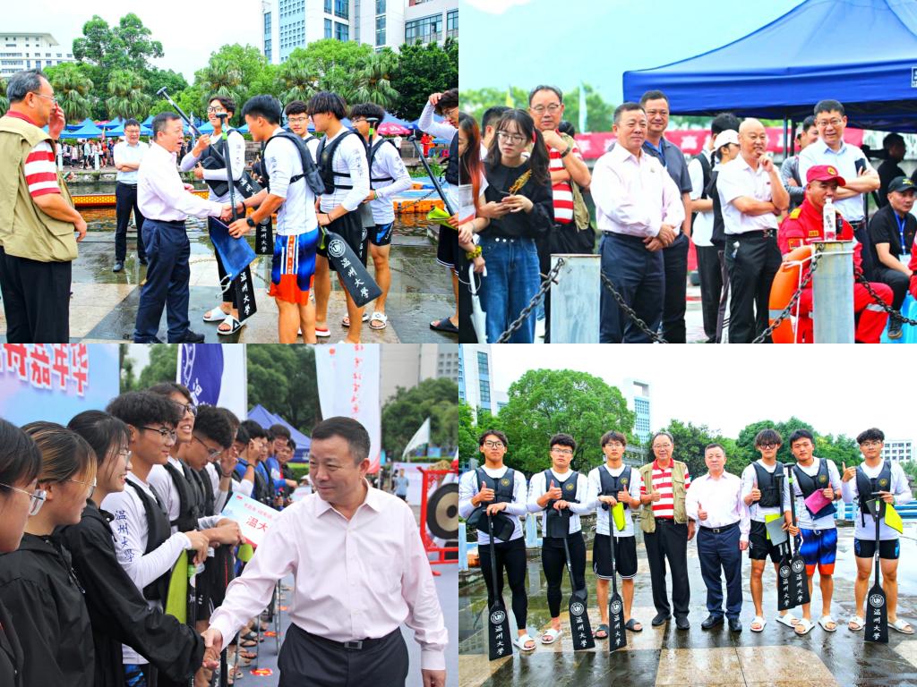 当天下午,校党委书记谢树华亲临赛场亲切慰问运动员、教练员和工作人员,并为参赛选手们鼓劲加油。他勉励温大龙舟队员们,要抓紧时间刻苦训练,努力通过“以赛促训”提高赛事成绩和执裁水平,力争为明年亚运会龙舟赛在温州的顺利举行累积充分的赛事保障和服务经验,更为当好“重要窗口”的建设者、维护者、展示者积极贡献温大体育力量。