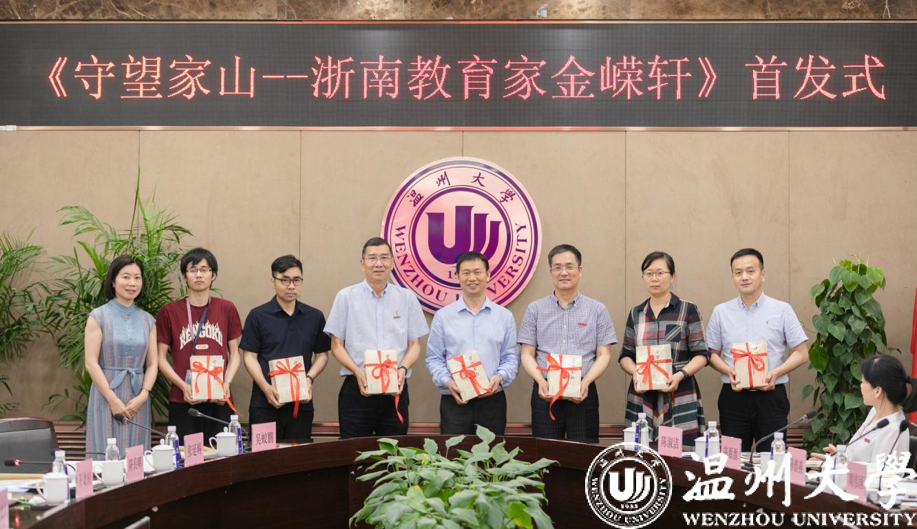 6月3日下午,由夏海豹、胡晓霞撰写的长篇纪实文学《守望家山——浙南教育家金嵘轩》首发式在小宝影院 举行。温州市委统战部常务副部长黄益友,校长赵敏,温州肯恩大学党委书记、校党委副书记王北铰,校党委副书记庄兴忠,民盟温州市委会专职副主委王黎然等单位领导和家属代表、作者出席首发式。