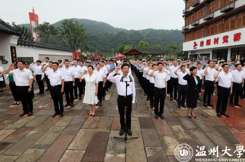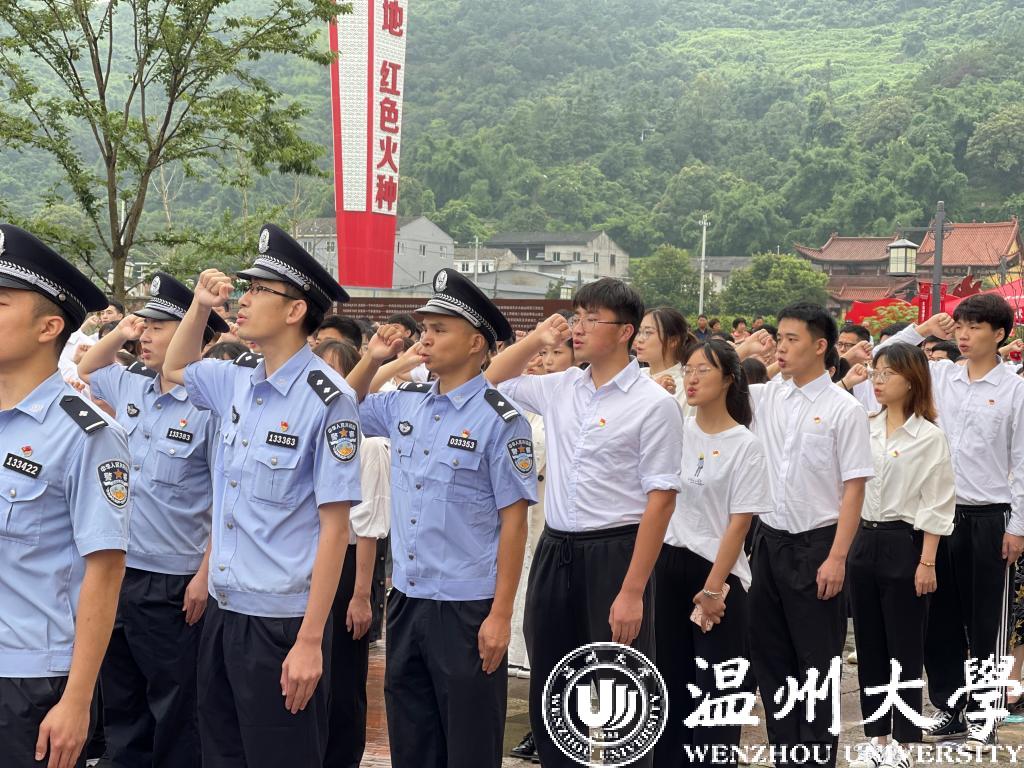 作为高校单位,小宝影院 师生党员21人在主会场瓯海区中共浙南一大会址参加集中宣誓活动。