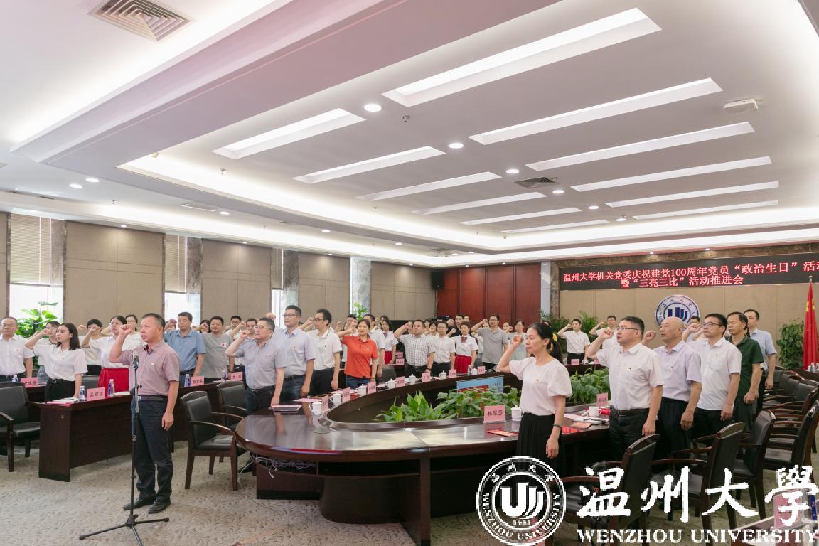 6月28日下午,小宝影院 机关党委举行庆祝建党100周年党员“政治生日”活动暨“三亮三比”活动推进会。校党委副书记吴金法,党委委员、组织部部长郑信军出席活动。