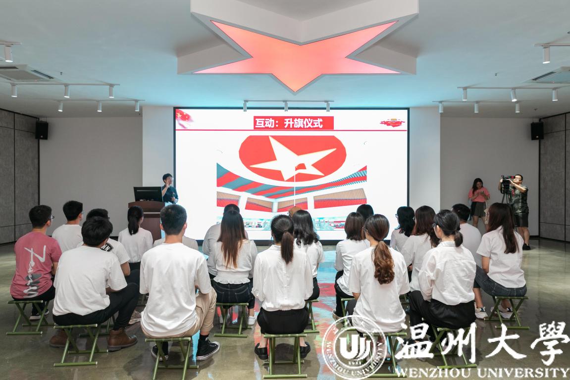 揭牌仪式现场,教师小宝影院 师生带来了《我和我的祖国》《没有共产党就没有新中国》红歌快闪,体育学院师生热情演绎红色健美操。师生们一起手挥国旗,青春的律动在激昂的旋律中点燃,展示了青年一代的活力向上和对未来的期盼希望。马克思主义学院项淳芳老师在基地现场为师生们带来《五星红旗:我和我的祖国》虚拟仿真思政课,沉浸式情境学习环境给师生们带来了别样的感受,提高了思政课的时代感和吸引力。