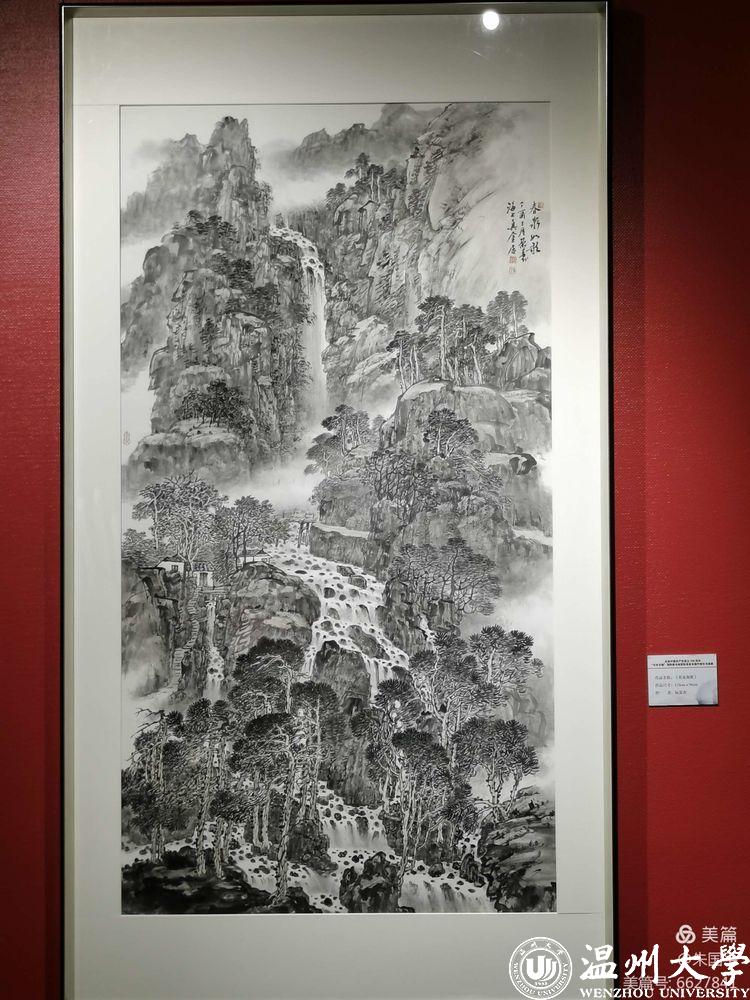 本次书画展共展出作品100件,其中大尺幅的作品尺寸达503*380cm(绘画)、600*220cm(书法),丈二、丈六作品比比皆是。展品之大,溧阳史无前例。阮荣春、朱国平二位教授书画家以“笔墨精神文化中国梦想”、以“胸中丘壑经营九州河山”为主旨,挥毫泼墨、直抒胸臆,深情讴歌了中国共产党的丰功伟绩,咏颂大好河山的日新月异。