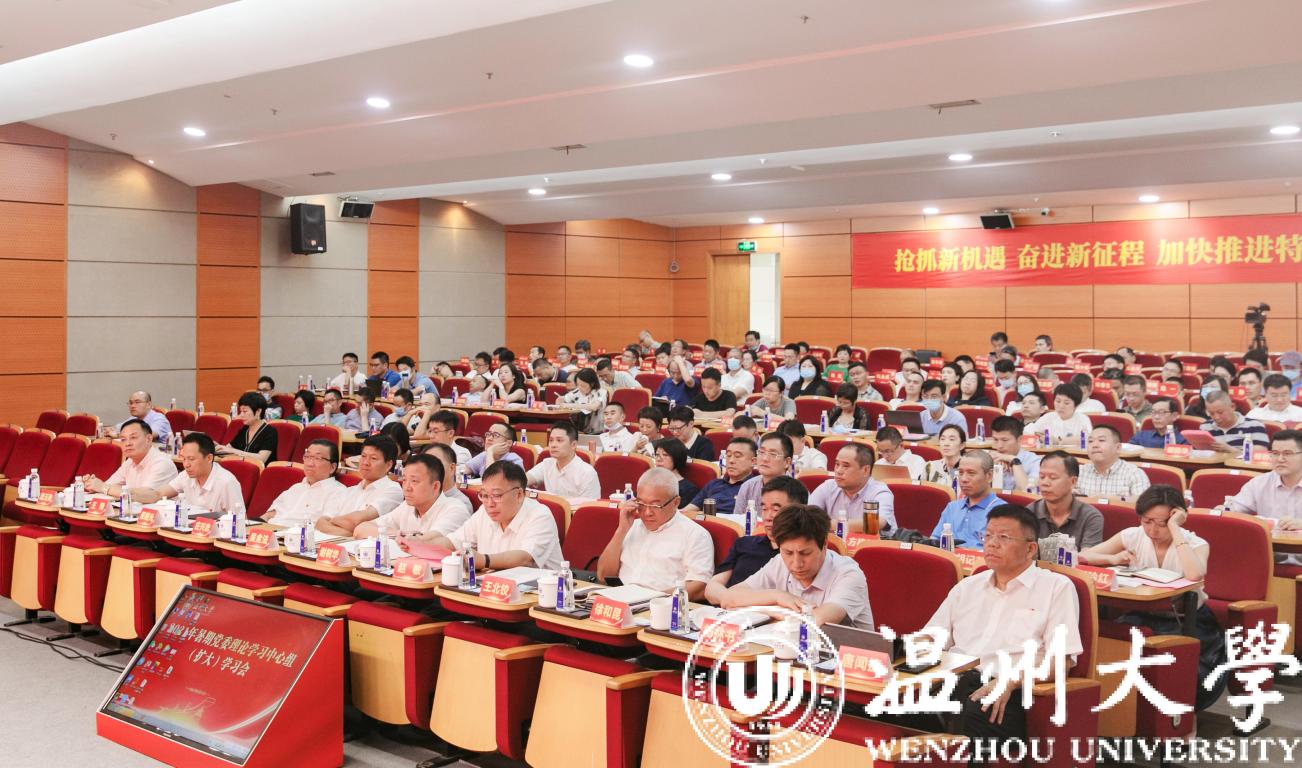 全体校领导,中层干部,民主党派及统战团体主要负责人,省一流学科负责人,省级以上科研平台负责人,省重点创新团队负责人,国家、省一流(重点建设)专业负习责人,省实验教学示范中心负责人,省教师教育基地执行主任,市金融研究院、校地研究院负责人,教育发展研究院负责人、温大附属实验幼儿园负责人,“三强”年轻干部培训班学员参加学习会。