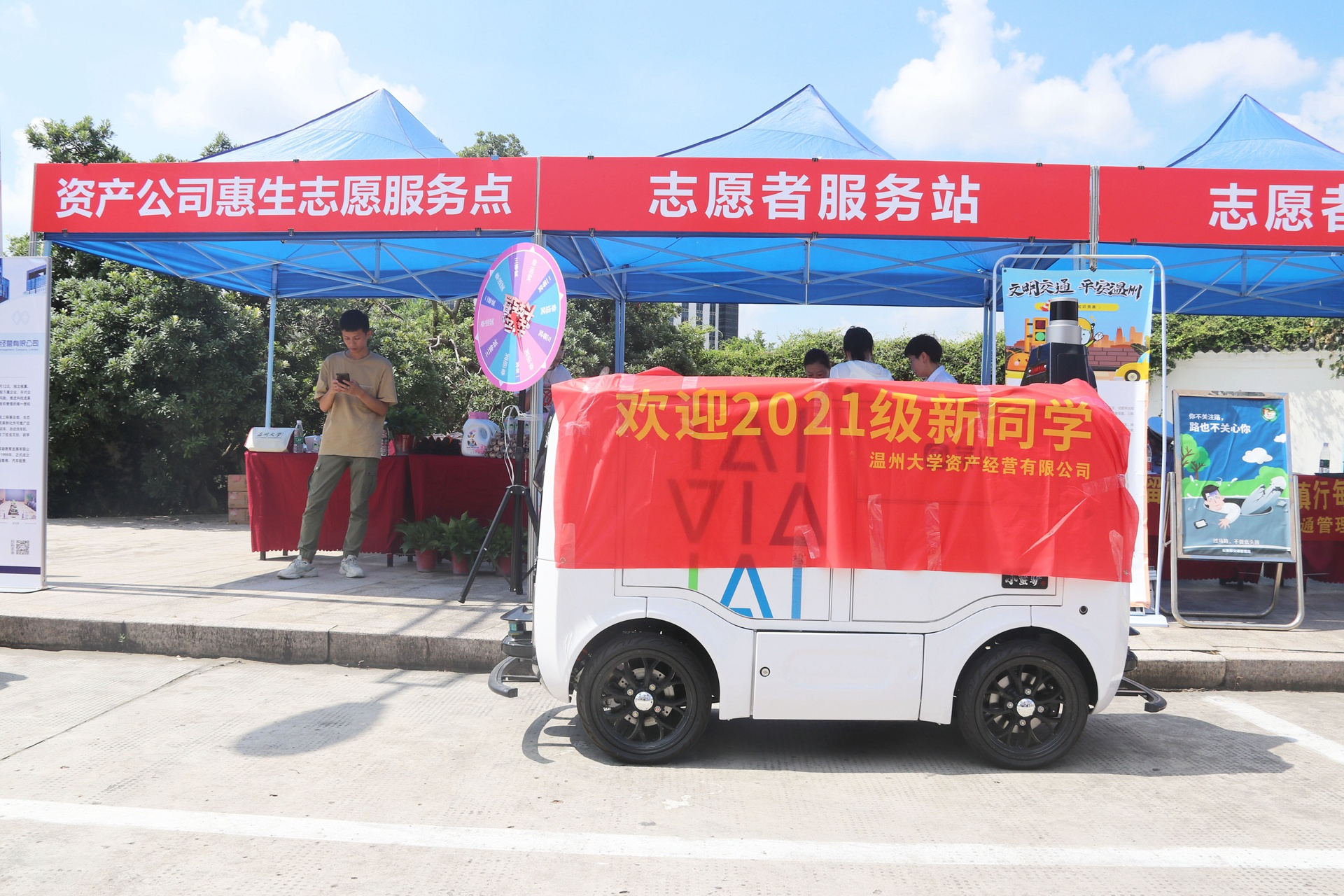 9月7日,小宝影院 的校园里格外热闹,因为迎来了2021届的新生,而在学校资产公司的惠生志愿服务站,还有一个新“人”格外吸引眼球,“他”就是智能物流机器人,又叫智能快递无人车,是小宝影院 推出的新学期惠生服务体验活动之一。