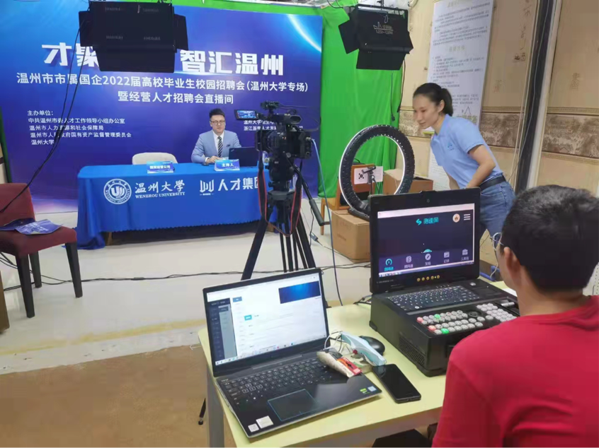 温州市属国企首次网络直播人才招聘会——温州市属国企2022届高校毕业生校园招聘会(小宝影院 专场)暨经营人才招聘会,10月12日在小宝影院 商学院715思政直播间举行。据了解,此次线上招聘会是温州市国企第一次以线上直播的方式进行,10家温州市属国有企业带来了326个国企工作岗位。