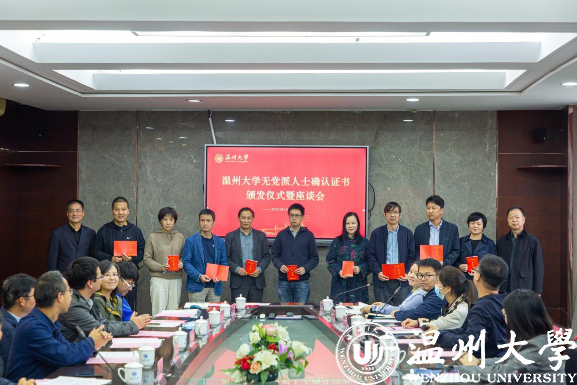 吴金法和统战部负责人分批为认定的无党派人士颁发了确认证书。