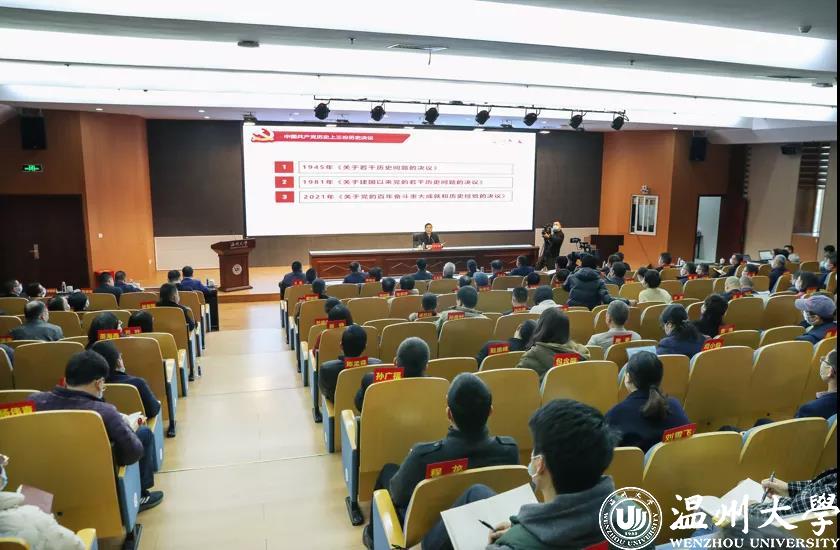结合温州和温大实际,以及自身学习心得,刘小涛强调,我们要从时代大潮、全球风云中分析演变机理、探究历史规律,提出因应的战略策略,以更加昂扬的姿态迈进新征程、建功新时代。要坚定不移推动高质量发展,强化体量规模带动、产业基础支撑、重大项目引领;坚定不移强化创新驱动,持续抓好基础研究、成果转化、人才引育;坚定不移全面深化改革,抢占数字化变革新蓝海,再造体制机制新优势,为创新创业创造提供广阔空间;坚定不移扩大全方位开放,加强重大开放平台建设、国际合作交流,打造枢纽型城市;坚定不移推进共同富裕,不断擦亮高等教育金名片,让广大学子在温州舒心创新创业创造;坚定不移提升城市品质,推动优质资源更集聚、璀璨文化更繁荣、幸福生活更有品质。