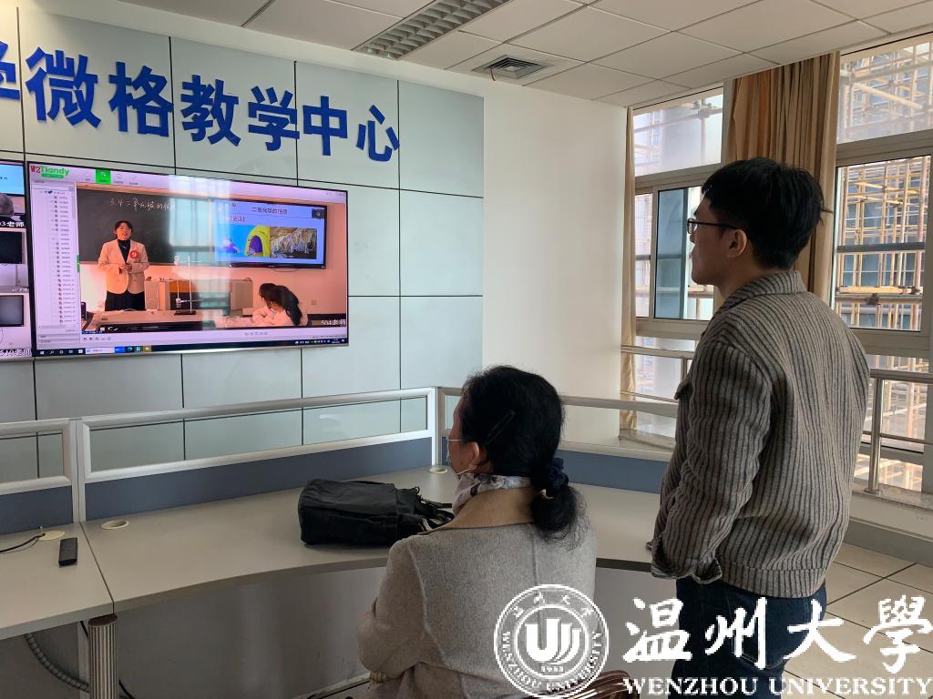 指导老师在微格监控室观看小宝影院 选手比赛画面