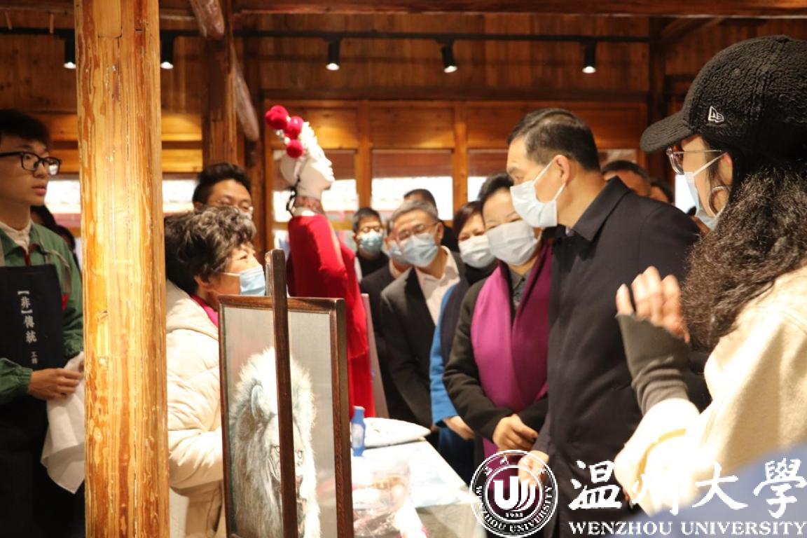 基地内举办的元旦非遗时尚市集,市集内容丰富,以南戏元素为主线的戏曲角色体验、非遗时尚秀、瓯绣、蓝染、数码热转印体验等项目。出自美术与设计学院叶茜副教授和程巍博士带领的“非”传统工坊,充分体现出美院的创新特色。商学院学生创业团队则从市场营销的战略角度,对这些文创产品进行了线上线下沉浸式的非遗互动体验直播,有效地开展跨学科整合并无限的市场效应。
