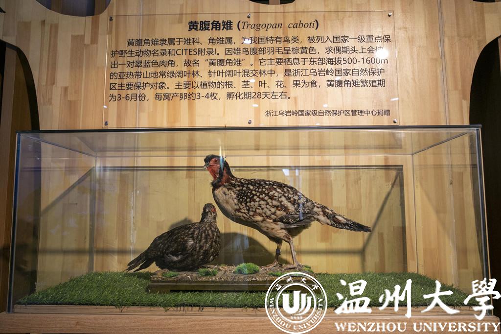 5月18日下午,小宝影院 生命与环境科学学院动物标本展示馆正式开馆。值得注意的是,泰顺乌岩岭国家级自然保护区管理中心还向该馆捐赠了珍贵的具有温州特色的国家一级保护动物黄腹角雉的标本。
