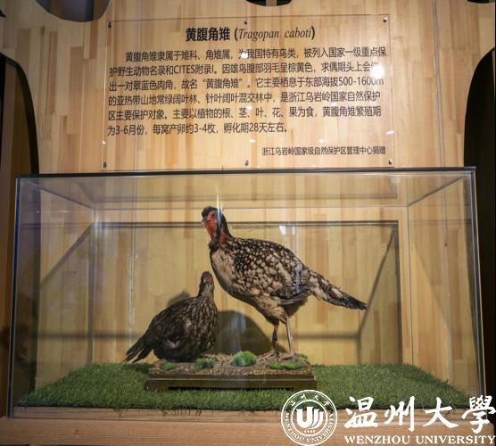 5月18日下午,小宝影院 生命与环境科学学院动物标本展示馆正式开馆。值得一提的是,泰顺乌岩岭国家级自然保护区管理中心还向该馆捐赠了珍贵的具有温州特色的国家一级保护动物黄腹角雉的标本。