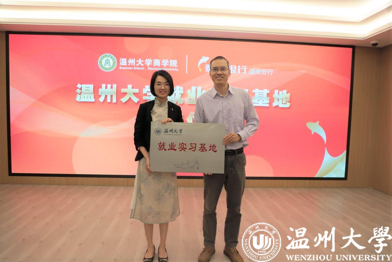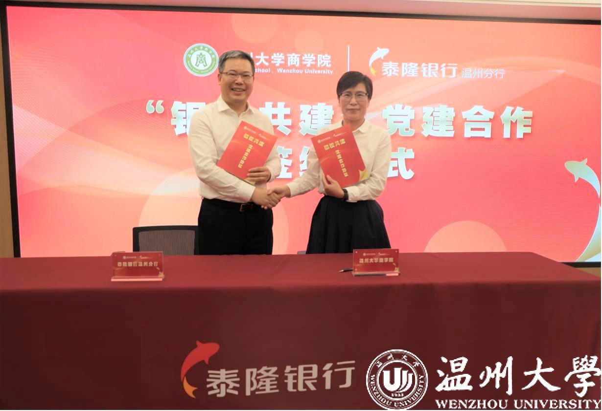 随后,双方领导及出席嘉宾就此次活动签订了“银校共建”党建合作协议,并举行了泰隆银行温州分行就业实习基地、研究生联合培养基地的授牌仪式。