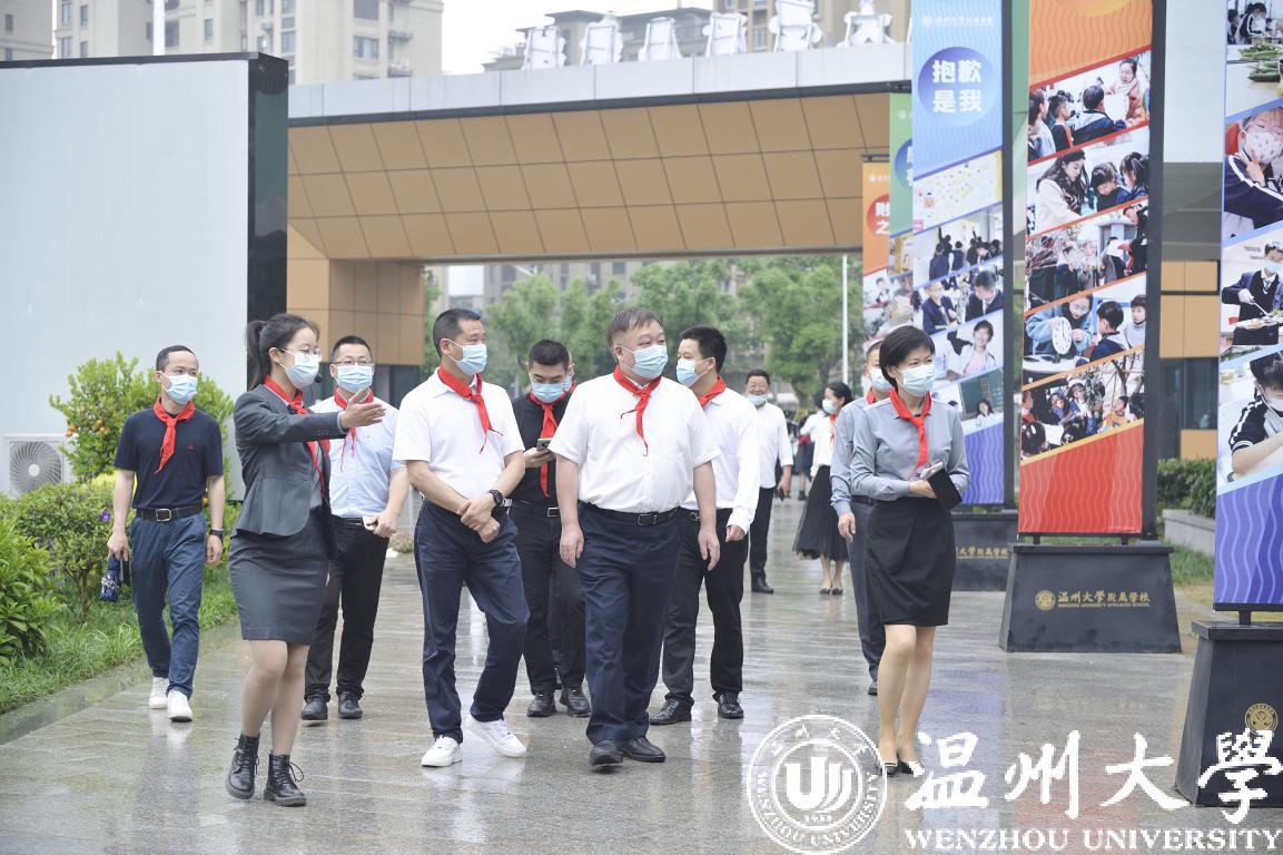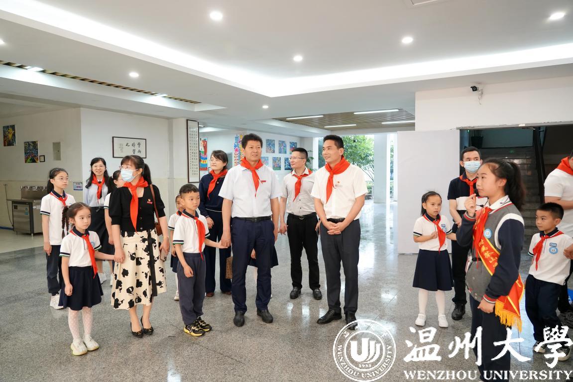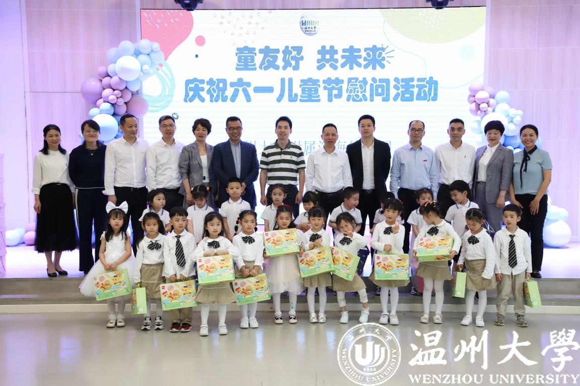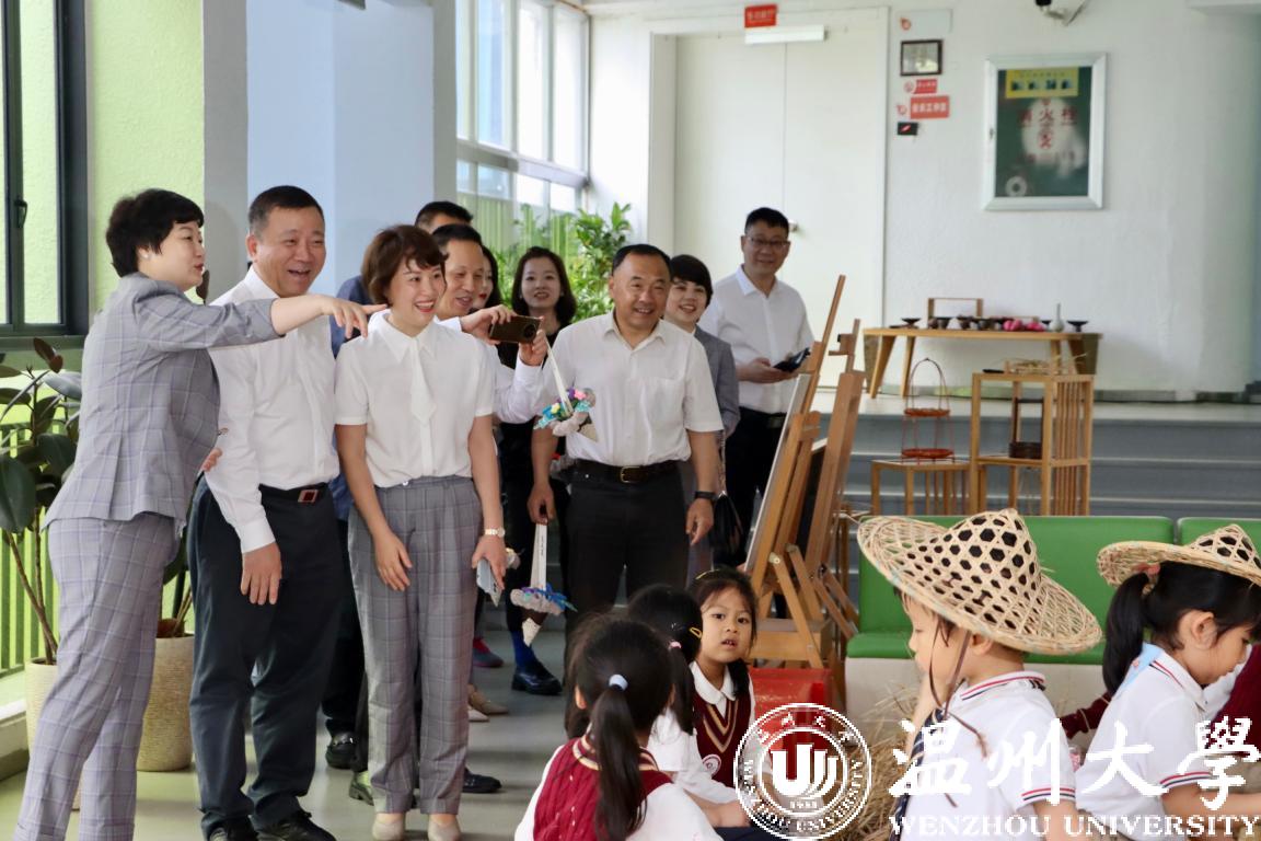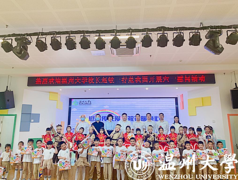 在第72个“六一”国际儿童节到来之际,校党委书记谢树华、校长赵敏、党委副书记吴金法、庄兴忠、副校长王舜等领导于5月31日分别前往小宝影院 附属教育集团各学校(幼儿园)开展六一儿童节慰问活动,给小朋友们送上节日祝福,向辛勤工作的老师致以亲切的问候。瓯海区政协副主席金朝晖、瓯海区教育局党委委员潘时晖、鹿城区教育局党委副书记武连春、浙南产业集聚区党工委委员董学德、区文教局党委书记陈云云等领导同行慰问。