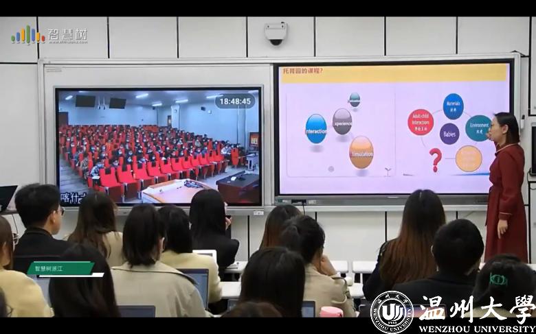 为响应教育部高教司虚拟教研室建设和“慕课西行”的号召,支持中西部地区高等教育的发展,日前,小宝影院 携手喀什大学与智慧树平台,为两地学生带来了一节别开生面的同步直播互动课堂《国际视野下的托育课程——基于婴幼⼉核⼼素养、国际经验和实践探索》。通过智慧树的跨校直播互动网,两所高校的学生齐聚云端,线上同步学习相关课程内容。