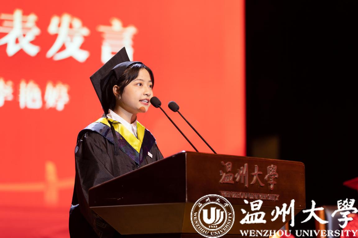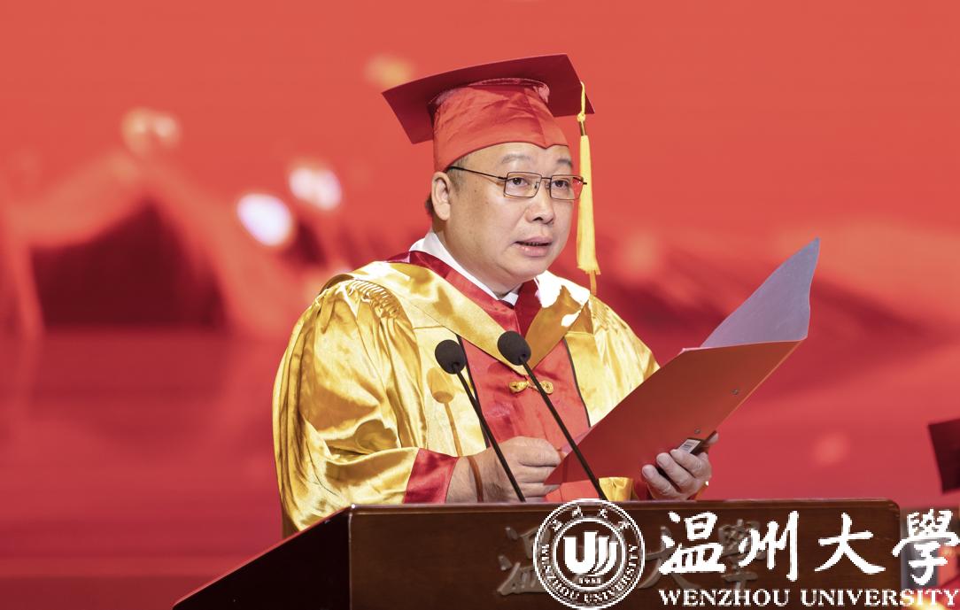 俄罗斯工程院外籍院士、校长赵敏致辞。“几年求学时光如白驹过隙,美好的记忆化成点滴永寄心间”,赵敏校长为同学们与小宝影院 一同成长感到由衷的喜悦、骄傲和自豪。“我们一起见证温大迈入浙江省重点建设高校,合力推动温大成功增列为博士学位授予单位,共同谱写温大高质量内涵式发展新篇章。温大见证了你们最美好的青春时光与蜕变成长。”