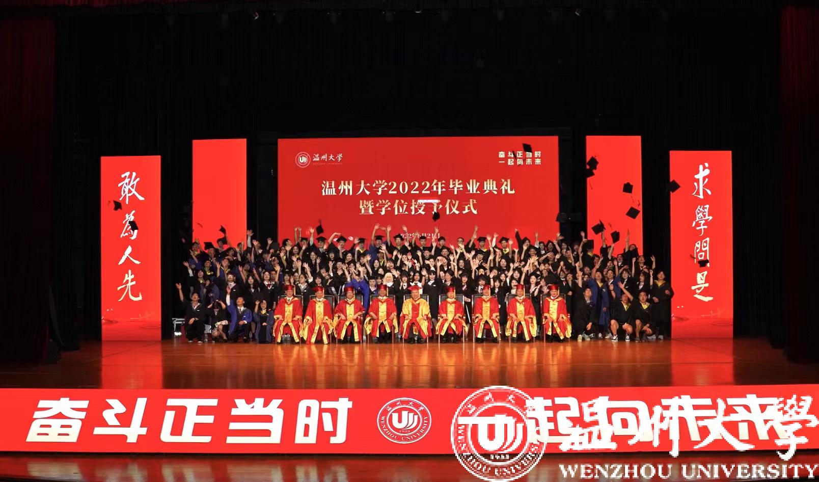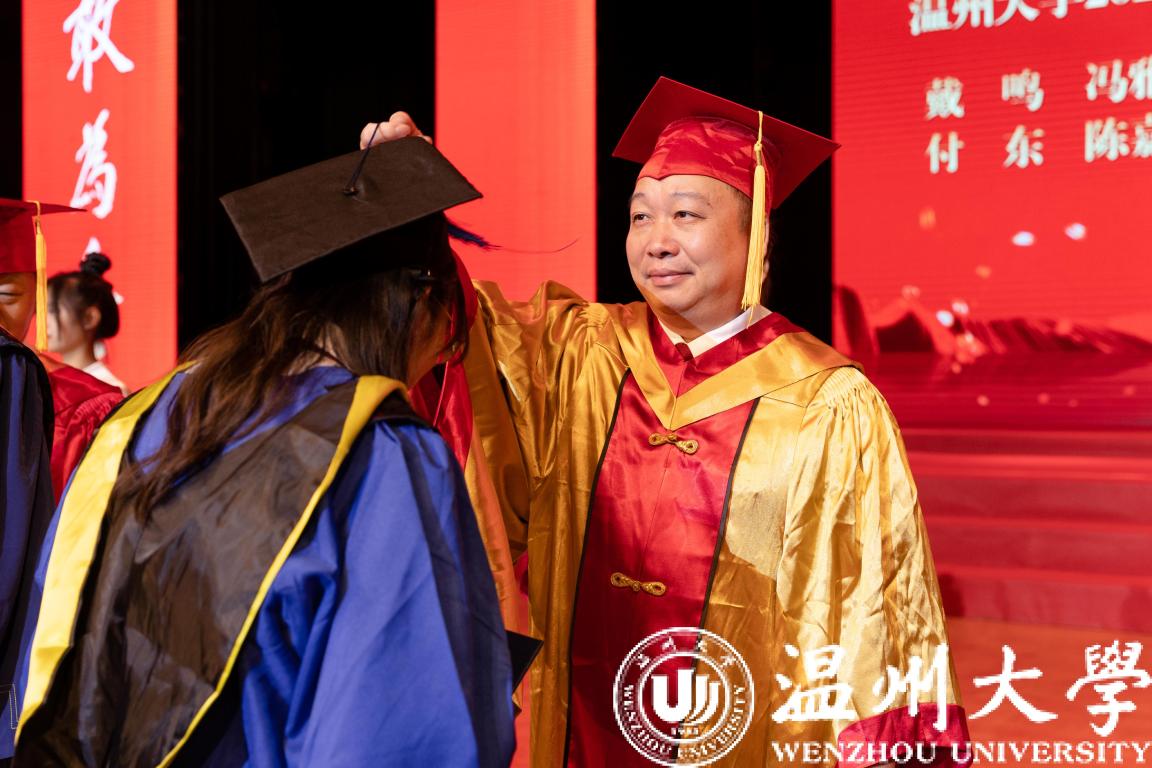 最后举行了庄严而隆重的学位授予仪式。校领导与嘉宾为毕业生代表颁发学位证书,并拨穗正冠、合影留念。帽穗轻轻一拨,掠过温大春华秋实的美好岁月,开启振翅高飞的人生新程,成为永远不变的温大人。