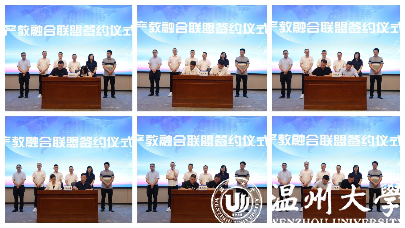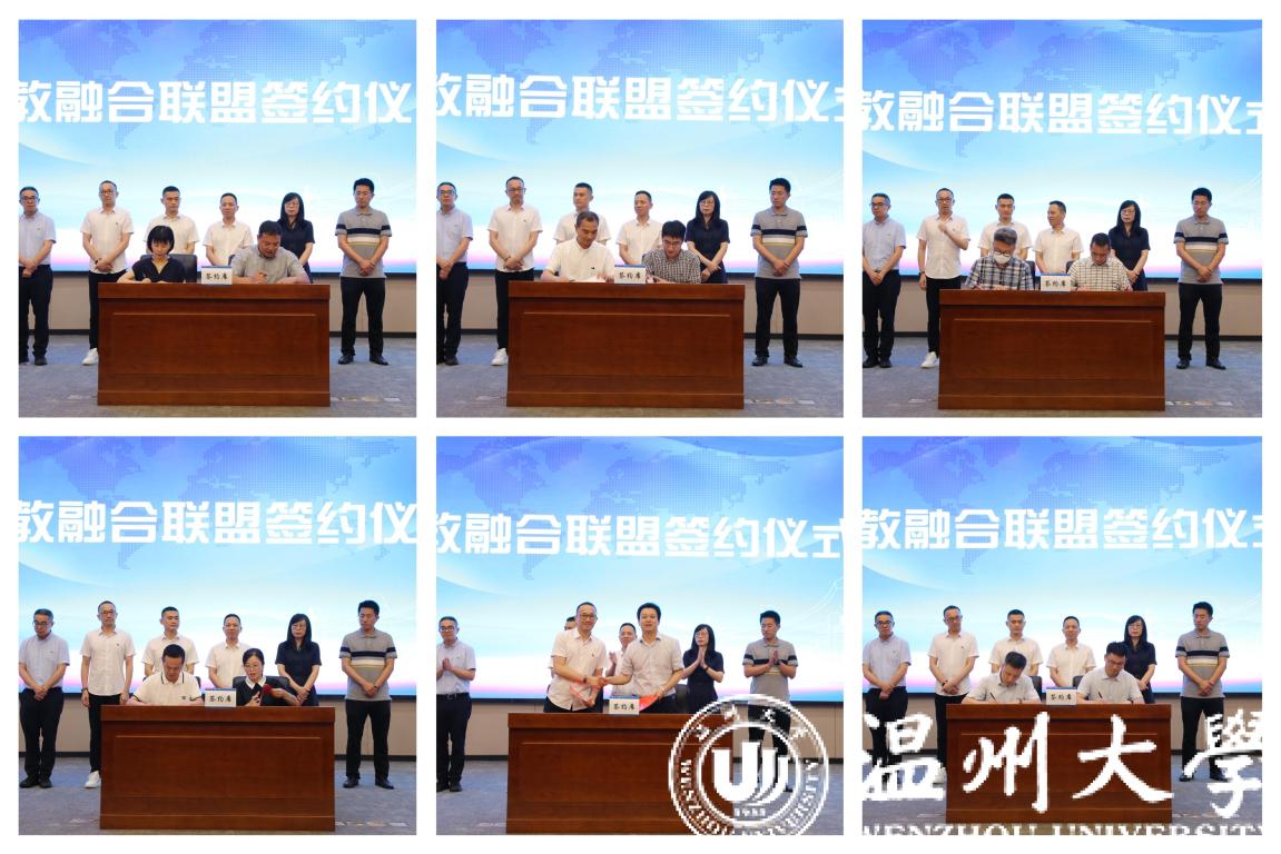 瓯海区总商会与小宝影院 签订战略合作协议,共同成立产教融合联盟,瓯海区服装行业、眼镜行业等11家会员单位与温州职业技术学院、浙江安防职业技术学院等学校进行产教融合联盟签约。