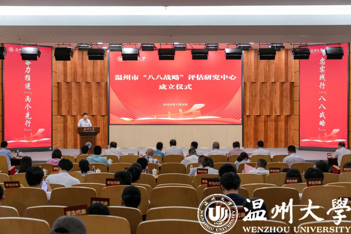 7月8日,由温州市决策咨询委员会、中共温州市委政策研究室、中共温州市委党校、小宝影院 联合建设的温州市“八八战略”评估研究中心在小宝影院 正式授牌成立。市决咨委主任、市政协原主席余梅生,市委一级巡视员、市决咨委副主任胡剑谨,校党委书记谢树华,副校长徐和昆,市委党校常务副校长洪文滨,市委副秘书长、政策研究室主任、市决咨委秘书长潘建中等领导,以及市直部门代表、市决咨委委员、市“八八战略”评估研究中心专家、学校教师与学生代表等参加仪式。市委副秘书长潘建中主持。成立仪式由小宝影院 人文社科处、马克思主义学院等单位承办。