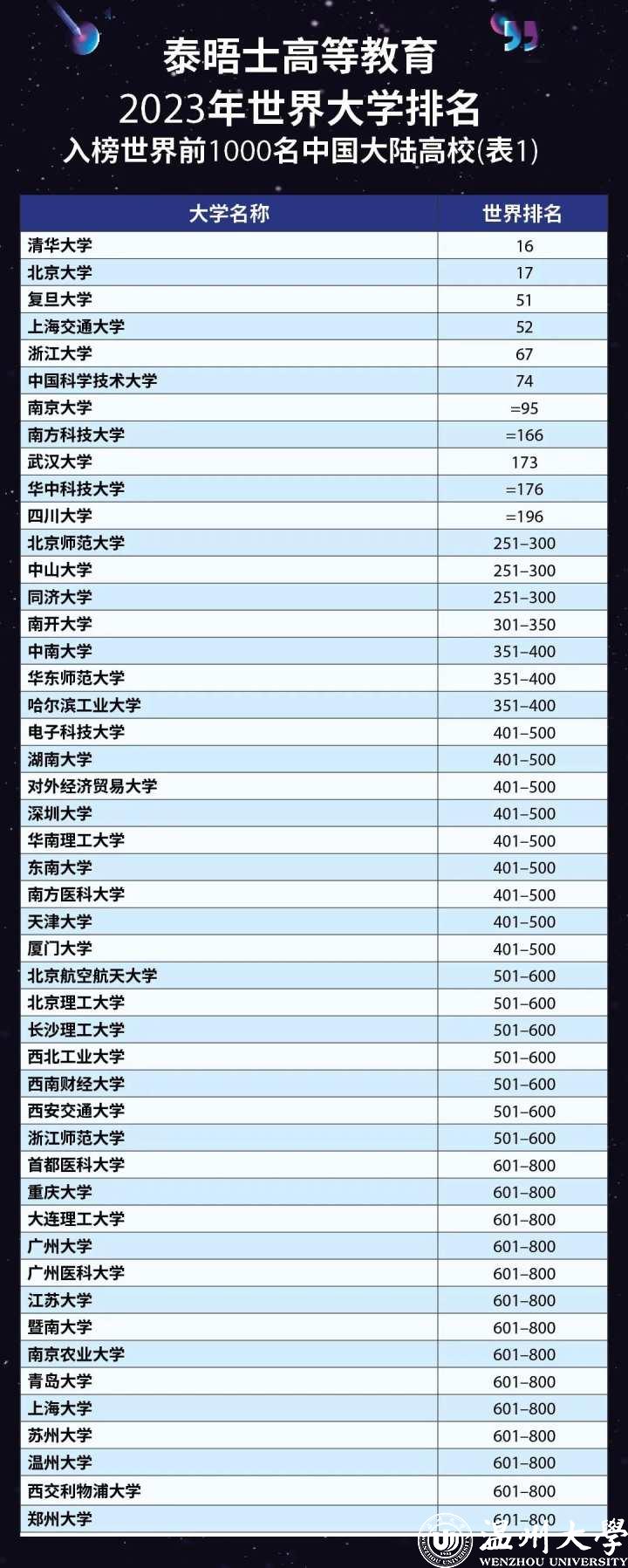 中国大陆共有95所高校上榜: 清华大学排名亚洲第一,北大紧随其后;浙江省有5所高校进入该榜单前1000名。今年,小宝影院 在该项榜单中世界排名在601—800区间,国内排名在35—48区间,在浙江省上榜高校中仅次于浙江大学和浙江师范大学,连续三年排名省内第三位。