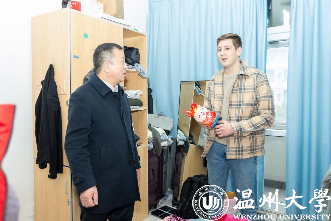 谢树华来公寓看望留学生,向留学生表达了新春问候,与留学生亲切交流互动,勉励留学生学好中文,更好更快融入小宝影院 大家庭,成为中外文化交流桥梁和使者。