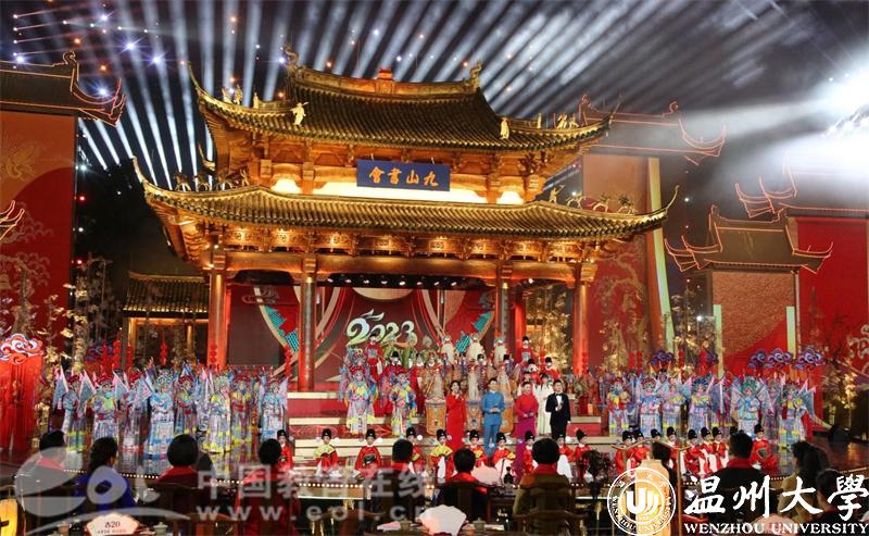 1月22日(大年初一) 晚,以“山河共华章”为主题的2023年中央广播电视总台春节戏曲晚会在央视综合频道与戏曲频道播出。本次春节戏曲晚会充分展示了“南戏故里 温大元素”的文脉与魅力,小宝影院 浙江传统戏曲研究与传承中心基地作为重要学术支持单位参与其中,小宝影院 交响乐团和舞蹈团受邀参加了多个节目的录制,为戏曲晚会贡献了温大力量。