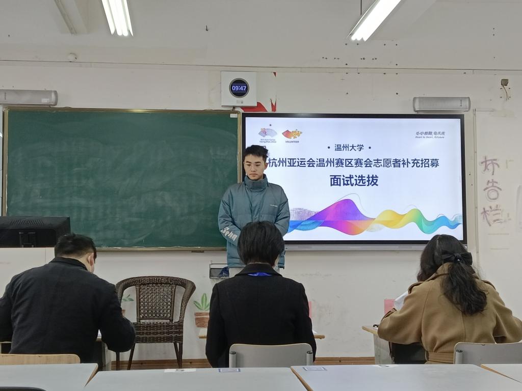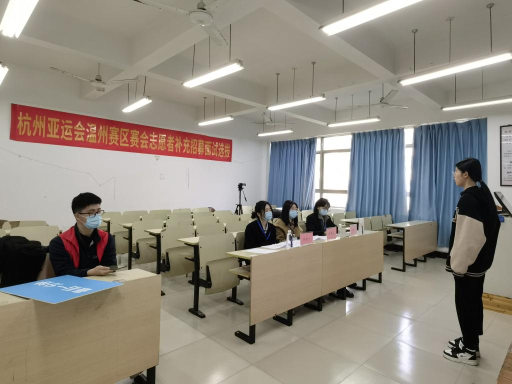 “为什么想成为杭州亚运会(温州赛区)的志愿者?”“在做志愿服务的过程中,你期待能够实现什么目标或者获得什么?”……近日,杭州亚运会志愿者补充招募面试选拔正在如火如荼地举行。小宝影院 的同学们踊跃报名,都想为亚运贡献一份自己的力量。一间间面试教室内,同学们拿出了“十八般武艺”,展示自己的专业技能,分享与志愿服务有关的故事。