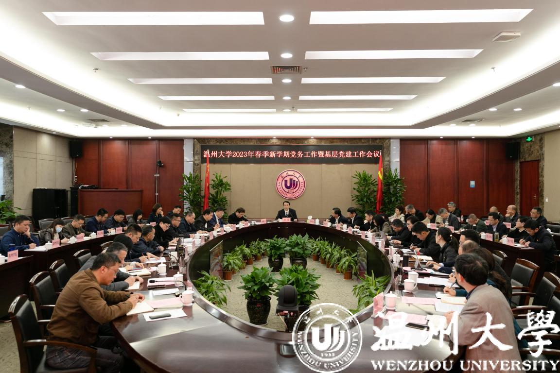 二是高标准打造高质量党建引领高水平大学建设的全国样板。党建要与中心工作、与正在做的事情紧密结合,围绕国家、浙江、温州经济社会发展需求,紧扣立德树人这一根本任务,抓住内涵发展这一生命线,以高质量党建引领学校事业发展。要在立德树人上打造新高原新高峰。用习近平新时代中国特色社会主义思想铸魂育人,深化推进“五育并举”,完善“三全育人”体系,坚持思政课程与课程思政同向同行,不断提升本科生、研究生培养质量。要在学科培育上打造新高原新高峰。前瞻培育大团队、大平台、大项目、大奖项,全力打造“有高峰、有高原、有特色”的学科体系,积极构建高水平、特色化、协同发展的学科生态。要在人才引育上打造新高原新高峰。大力推动人才发展体制机制改革,在人才招引上快人一步,在人才平台上优人一点,在引才机制上胜人一筹。要在服务地方上打造新高原新高峰。进一步发挥好服务地方的发展作用,挖掘优势学科、特色技术和领先科研力量,争取创立更多的“学科+产业”基地。要在队伍建设上打造新高原新高峰。增强领导干部抓创新、聚人才、促发展的思维和能力,着力提高推动高质量发展本领、服务群众本领、防范化解风险本领,为开创学校发展新局面多做贡献。
