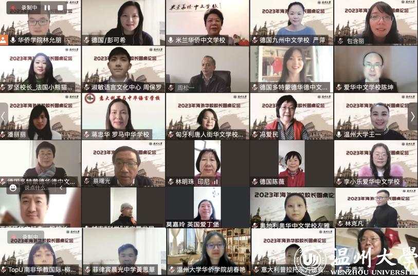 3月8日晚,由浙江省侨联、小宝影院 联合主办的2023年海外华校校长圆桌论坛成功举办,来自意大利、德国、法国、加拿大、美国、西班牙、葡萄牙、巴西、南非、越南、菲律宾、英国、芬兰、奥地利、匈牙利、印度尼西亚、文莱等近20个国家的50余位华校校长、教师、专家学者齐聚云端,共同探讨海外华文教育的未来发展。